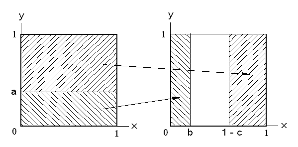 In terms of the parameters a,b,c of the applet the Baker's map is given by