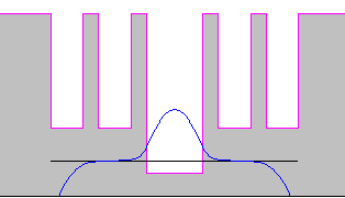 ActividadesEl applet de esta página es semejante al sólido lineal, salvo que en éste podemos situar un defecto en el centro de la red lineal consistente en un pozo de potencial de distinta anchura y/o profundidad. El objetivo del programa es observar cómo se modifican los niveles de energía y las funciones de onda por la presencia de dicho defecto.